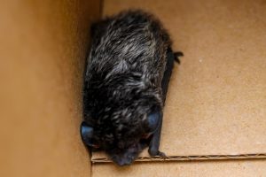 Handling a bat should never be done with bare hands but it’s best to use a thick cloth or a towel to protect yourself from being bitten. When trying to lure the bat, you should stay calm and avoid making a lot of noise. A cardboard box or other small container can be used to catch the bat once it has landed. Place a piece of cardboard under the container and, if possible, use a container with a tight-fitting lid but air openings on the sides.