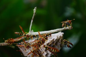 These insects can be very persistent and aggressive if you try to get rid of them by swatting them or spraying pesticides, or you come too close to their nest. Their instinct is to protect their nest, especially the larvae. If the wasp feels threatened, it will use its stinger to defend against predators.